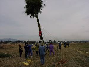 ![]() 16 杭に縛る。 |
