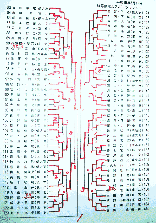 昨年の結果:平成14年度群馬県高等学校総合体育大会ソフトテニス大会